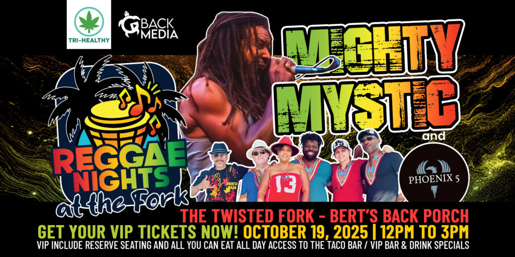 Clear your schedule — this is massive. Joseph Orchulli in Matlacha, then over to Twisted Fork for Phoenix 5 and reggae legend Mighty Mystic. This night is history in the making for Southwest Florida reggae.